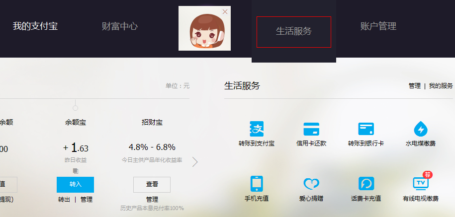 1、登录支付宝(https://www.alipay.com/)个人页面