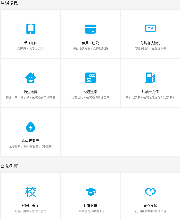 关于使用支付宝为校园一卡通充值的说明