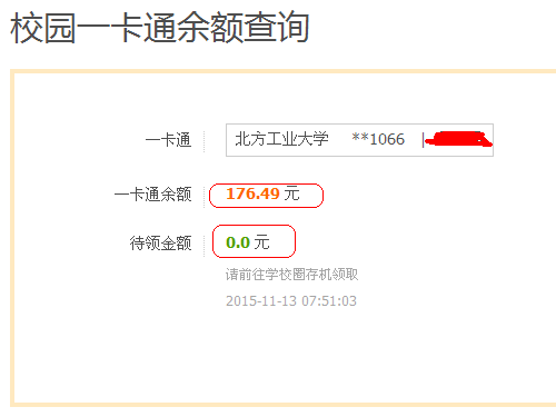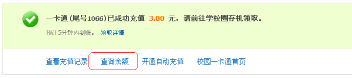 特别说明:通过一卡通设备查询充值记录、消费记录及余额,有一天的延时,所以刚刚领取的金额只有第二天才会在一卡通设备上有所体现。