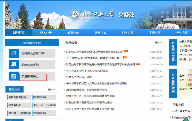 (2)登录yl6776永利集团官网收费服务平台(http://sites.ncut.edu.cn/bfgycwc/),进入学生缴费界面。