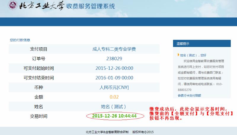 (1) 请在线上付款过程中注意保护个人信息,保证个人资金安全!(不要在网吧等公用电脑上进行线上缴费操作)