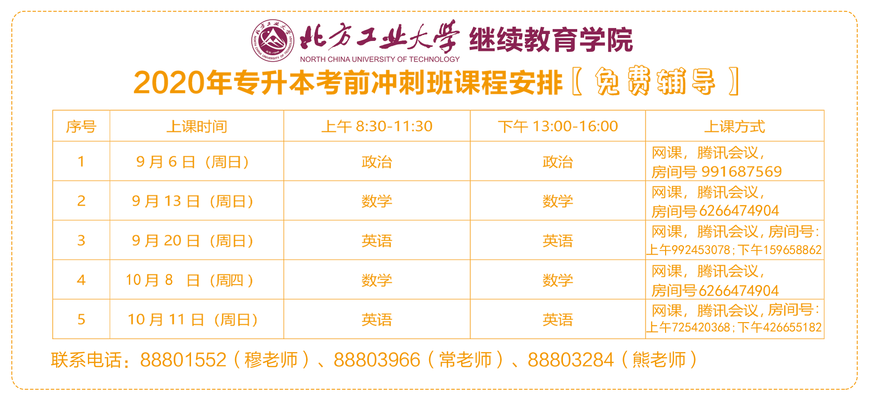 yl6776永利集团官网2020年成人高考专升本考前冲刺班课程安排
