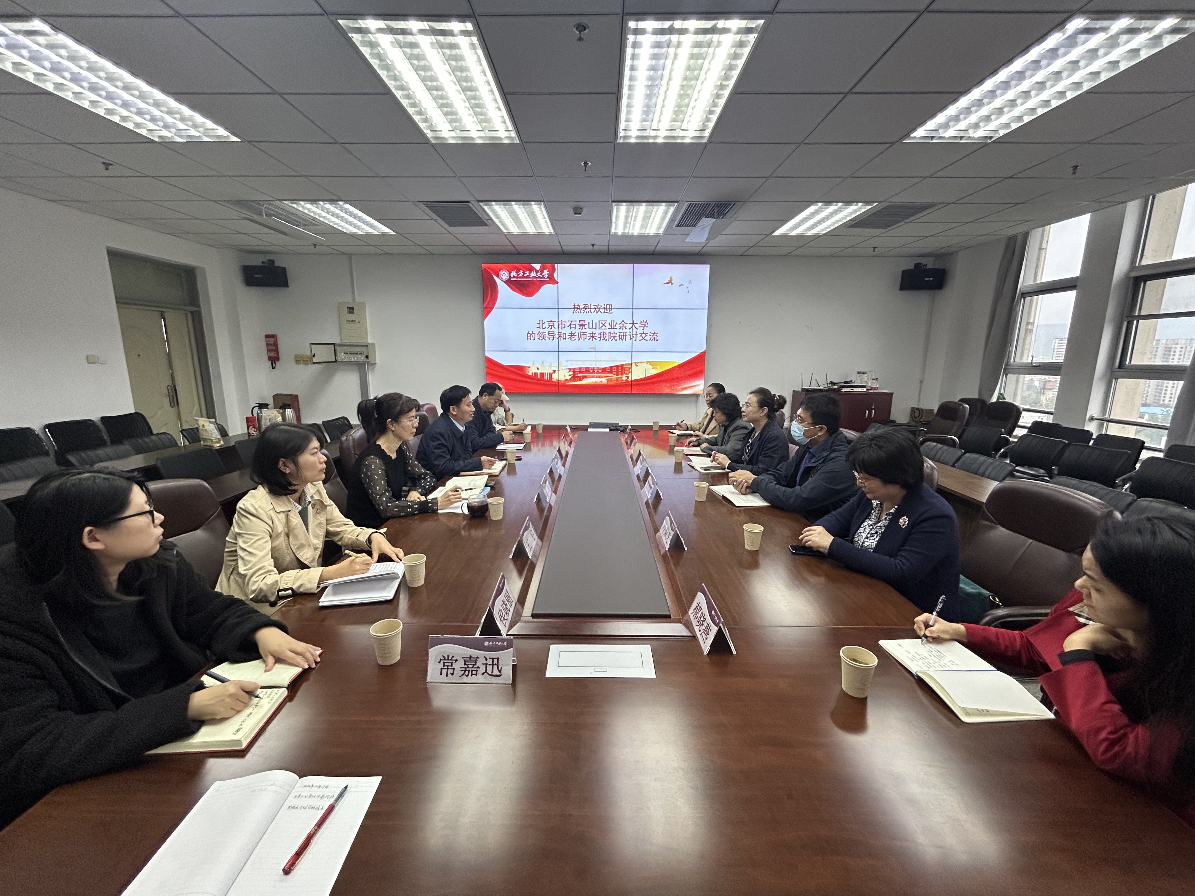 刘荣等分别介绍了石景山区业余大学在学历教育、非学历教育、社区教育的开展情况,并对我院数字化教学资源建设、信息化管理服务平台等先进举措进行了高度评价。
